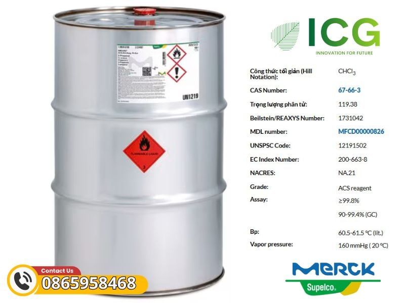 - Tên hóa chất: Chloroform phân tích Merck EMSURE®