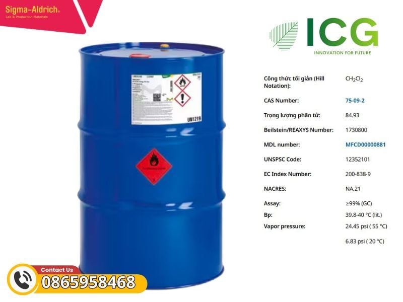 - Tên gọi khác: DCM; Methylene chloride; Methylene dichloride; Dung môi Dichloromethane; Chất Dichloromethane CH₂Cl₂; Hóa chất dichloromethane; Dichloromethane Merck; Dichloromethane CAS 75-09-2; Dung môi DCM.