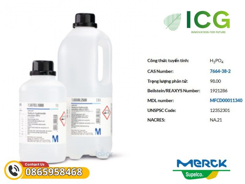 - Tên hóa chất: Axit orthophosphoric 85% phân tích Merck EMSURE®